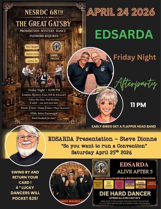 We are thrilled to announce that the 68th New England Square & Round Dance Convention will be held at the Boxboro Regency! This year’s convention will feature a beautiful venue, lots of dancing, variety of callers and cuers, plus some great surprises!